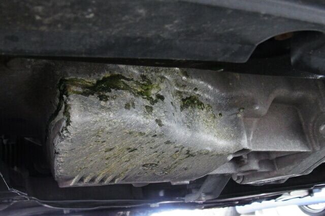 どうも、クーラントがラジエター周りで漏れてて、それがオイルパンに付着してました。